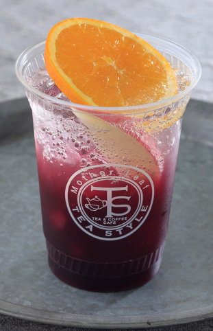 オレンジと林檎の赤ぶどうソーダ 640円~ 濃厚な赤葡萄ジュースに自家製アップルティーシロップと炭酸を合わせた一品となっております。